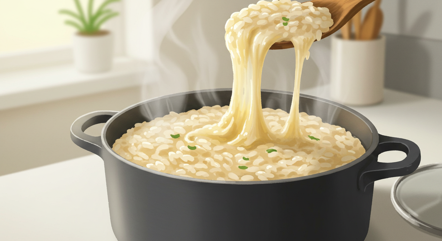 - 냄비에 우유와 찬밥, 설탕을 넣고 중약불에서 끓입니다.
